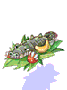 Roasted crocodile stuffed with boiled vegetables. Said to be a rare find for a dish of its kind. AGI + 7.